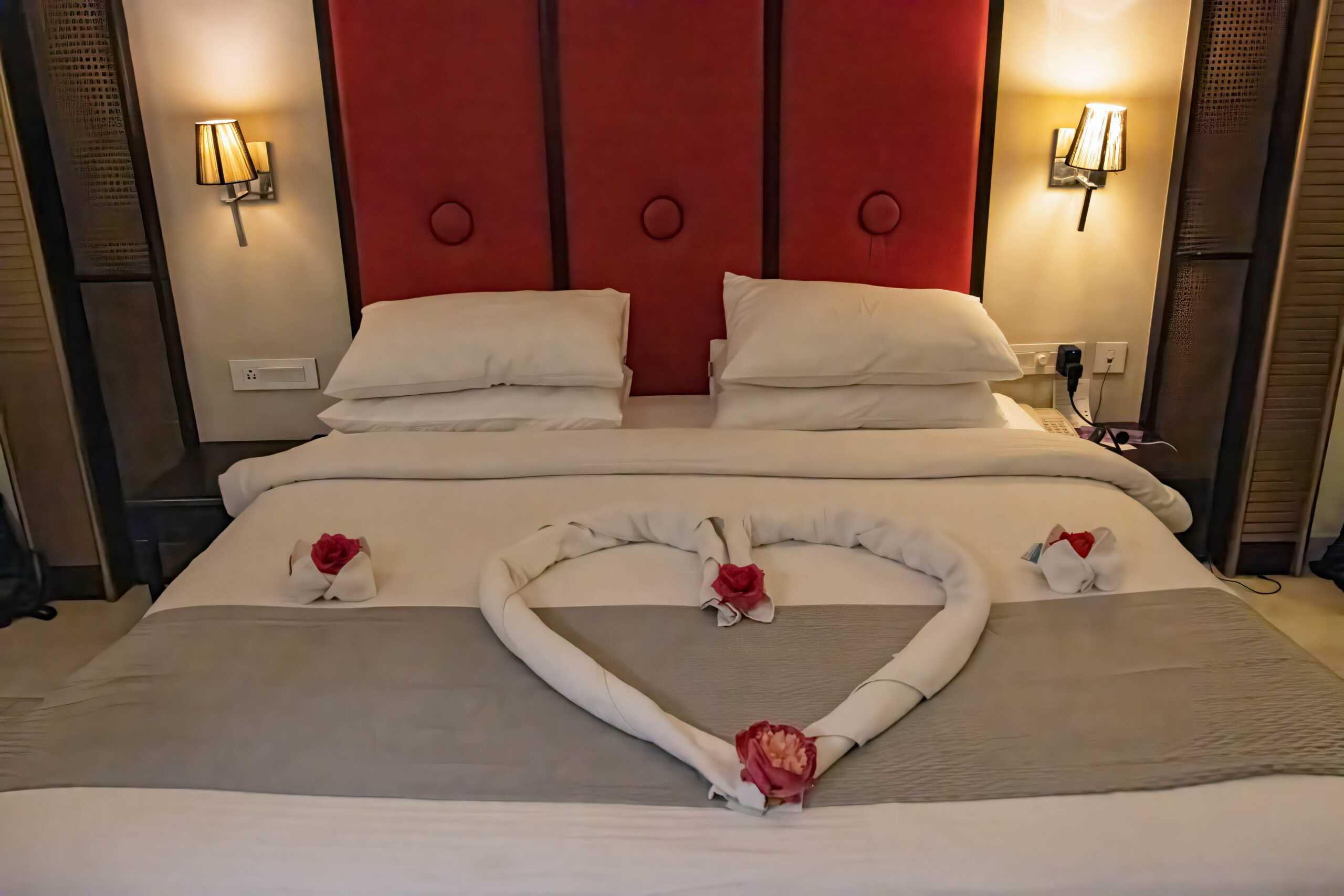 Suneet drove us back to the hotel, where Dinesh left us for a couple of hours of downtime before tonight’s activity. When we returned to our room it was to find our bed adorned with some towel art – a heart in the centre made from our bath towels with lotus flowers on each side folded from our face washers.