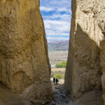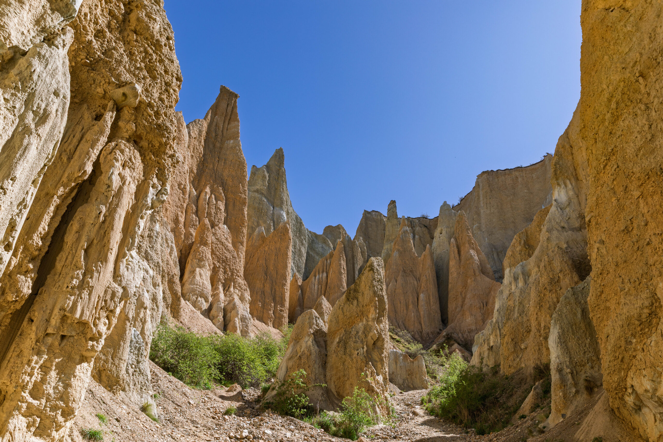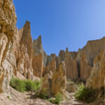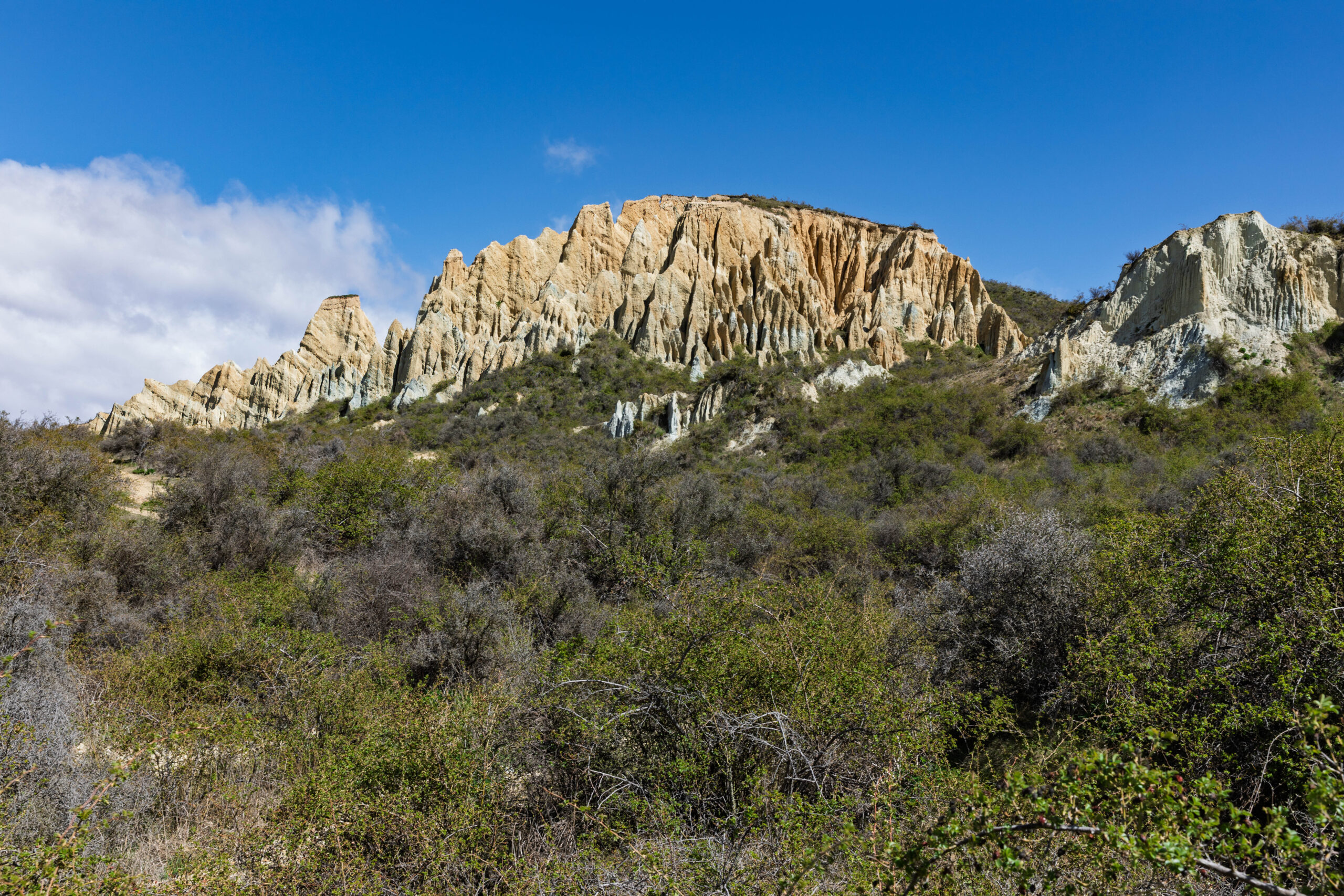 Although we could see the formations from the car park, we took the short walk along the cliffs to see the whole landscape. The formations were a bit otherworldly and reminded us of the landscape at Mungo Lake in Australia and a little bit of the Fairy Chimneys in Cappadocia, Turkey. At the end of the walk we entered one of the canyons where we were surrounded by these strange clay cliffs. There were lots of birds making good use of the pits and holes in the cliff faces for nests.