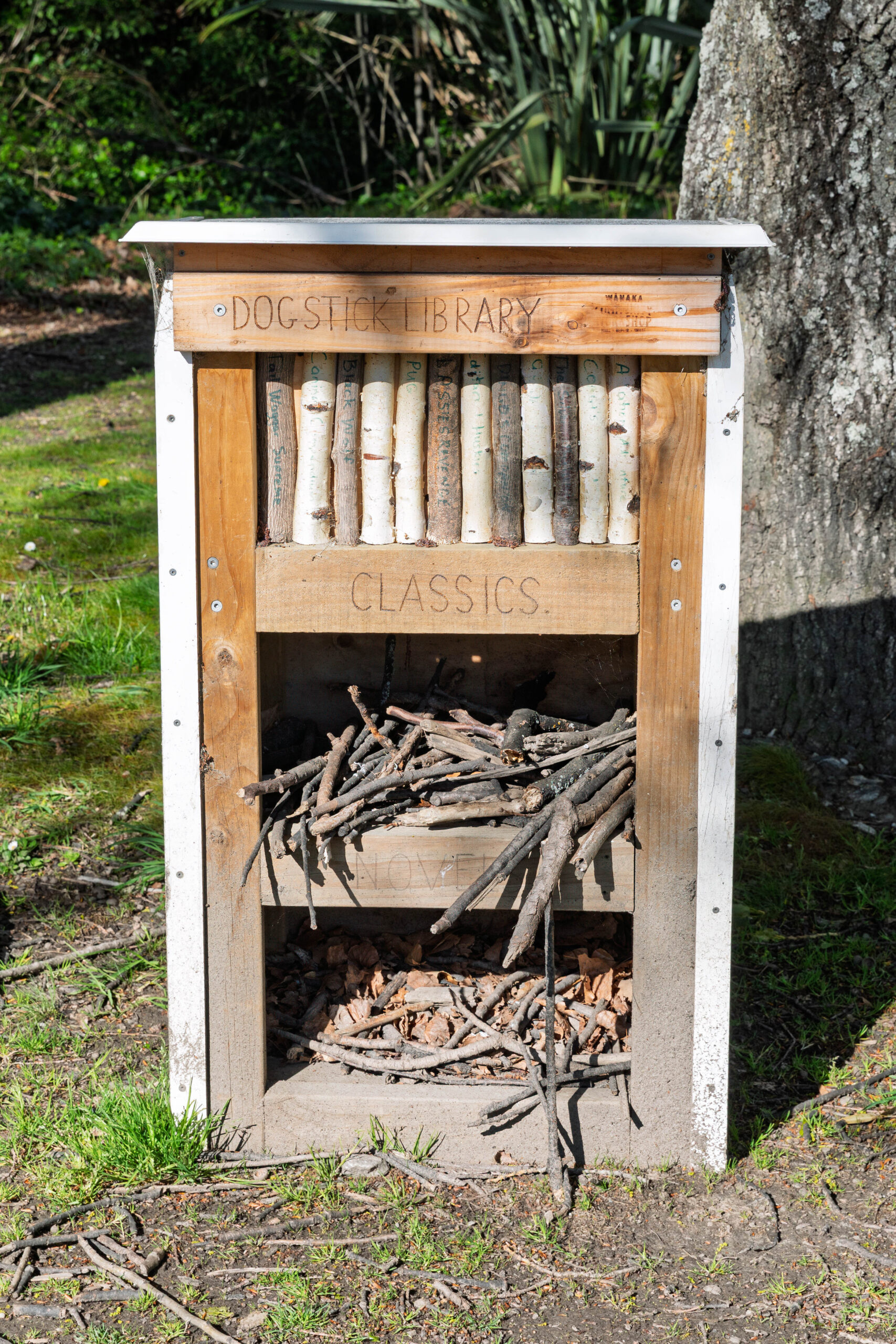 Our first stop was back down at That Wanaka Tree … just in case the mountains behind the tree were looking clearer this morning. What we did notice on our way from the car park to the tree was the Dog Stick Library which we both thought was pretty funny. Arriving at the lakeside the tree, the lake, the mountains all looked much the same as yesterday. We snapped a couple more pics anyway, before programming the SatNav for Lake Tekapo.
