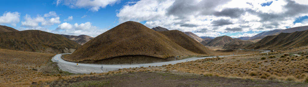 At Tarras we reached a T-intersection where we turned left on State Highway 8. Our journey was very up and down over mountains and through the Lindis Valley. After about an hour on the road, we climbed up to the Lindis Pass where we stopped at the Summit Lookout to take a few photos.