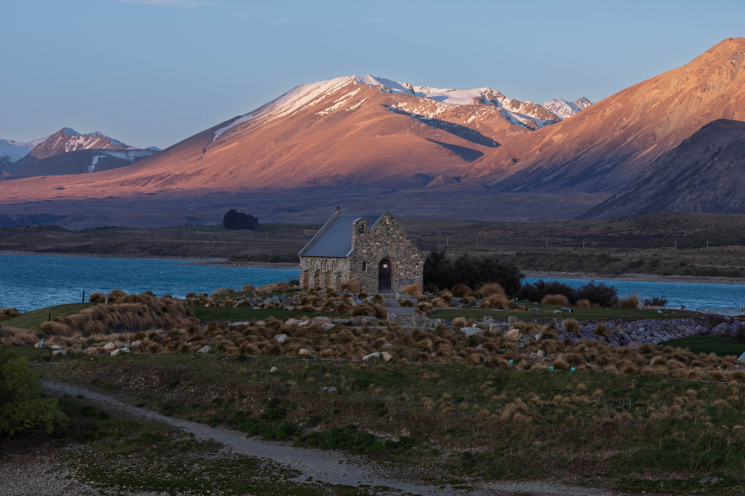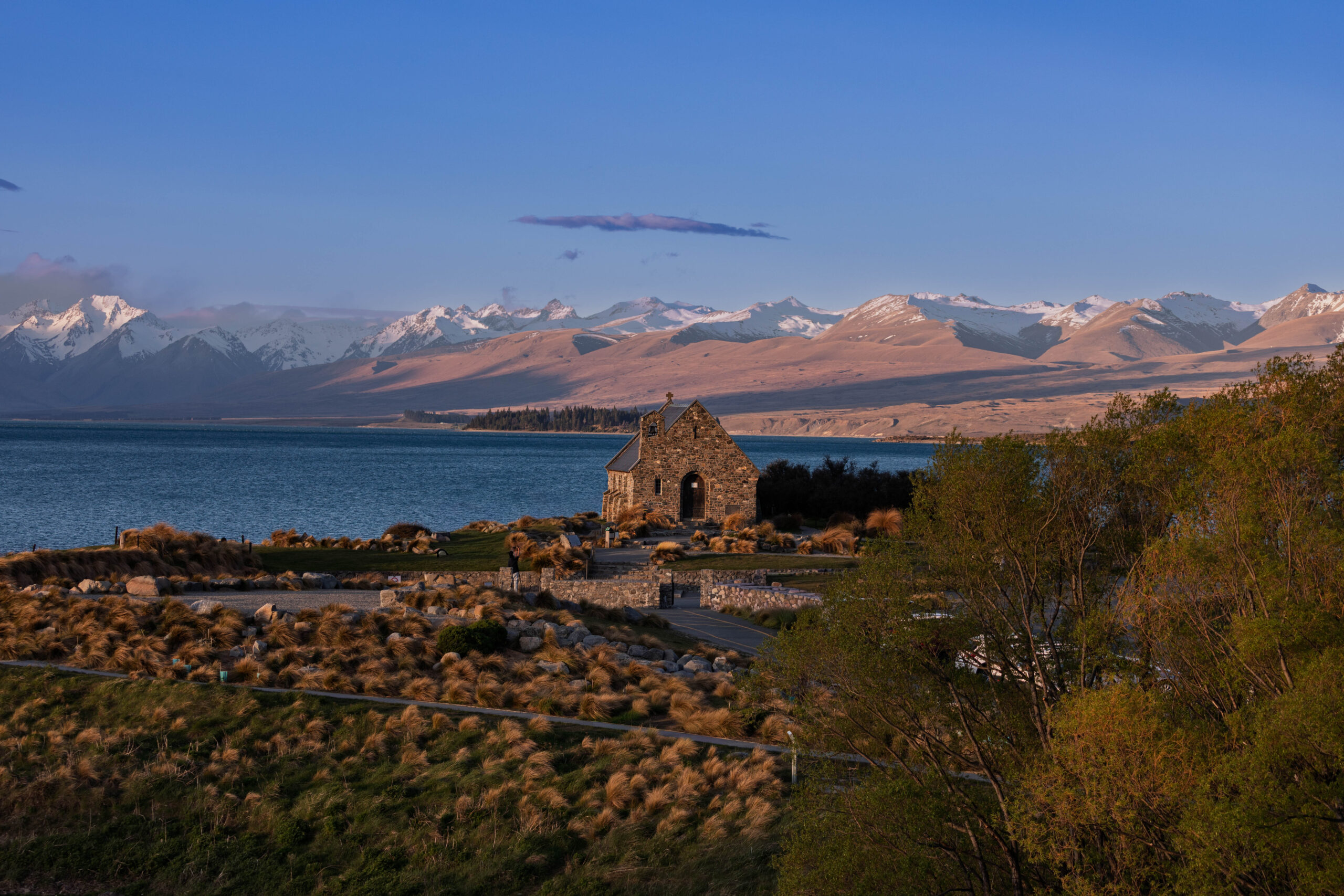 We drove down into town for dinner at the Blue Lake. After eating we drove back to the Church of the Good Shepherd, to take more photos in the late afternoon/dusk lighting. We were hoping for some pink clouds in the background, but that was not to be.