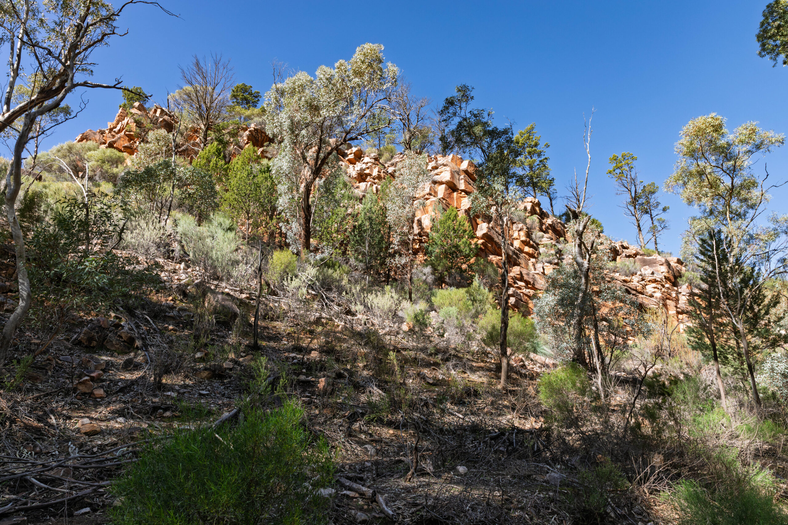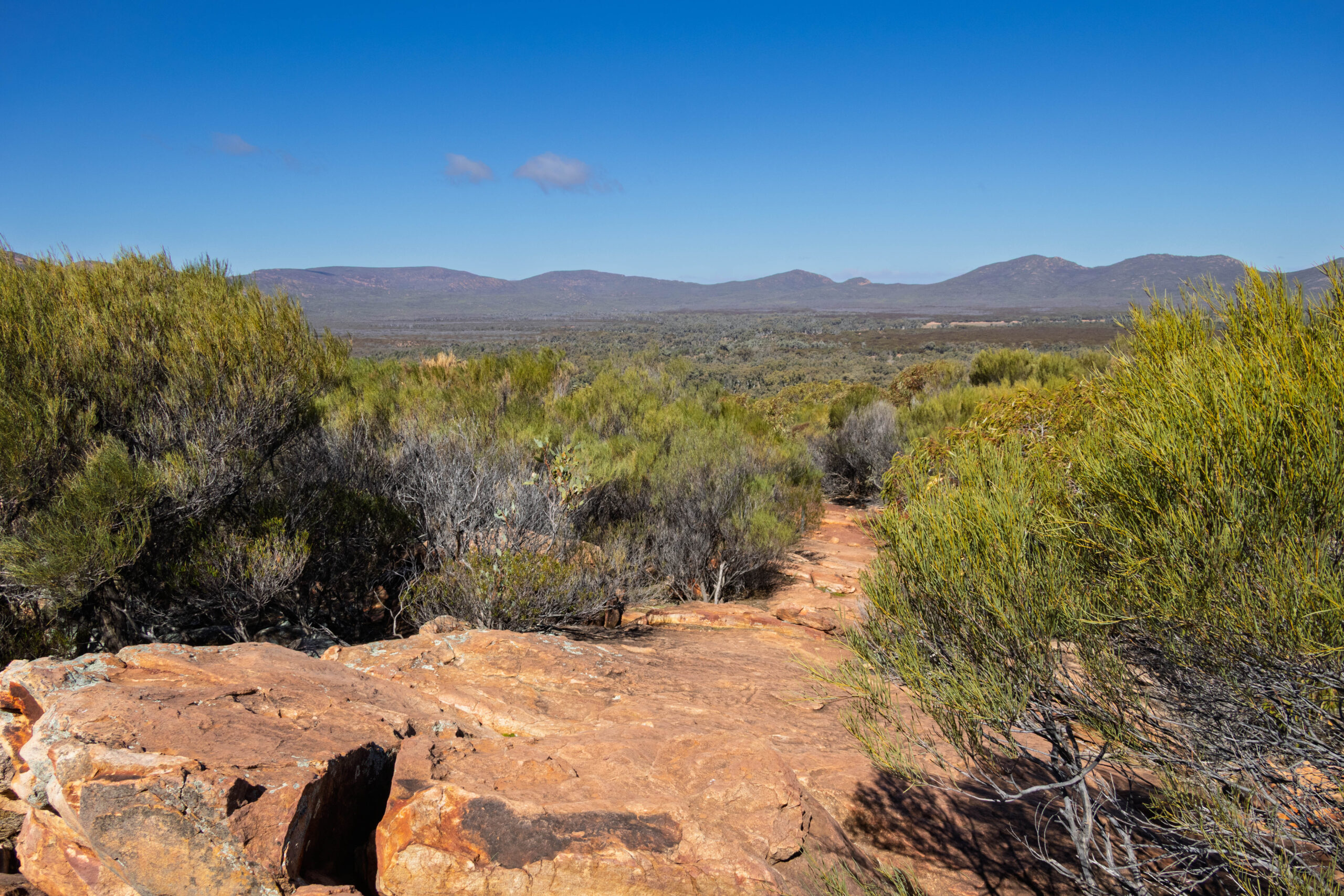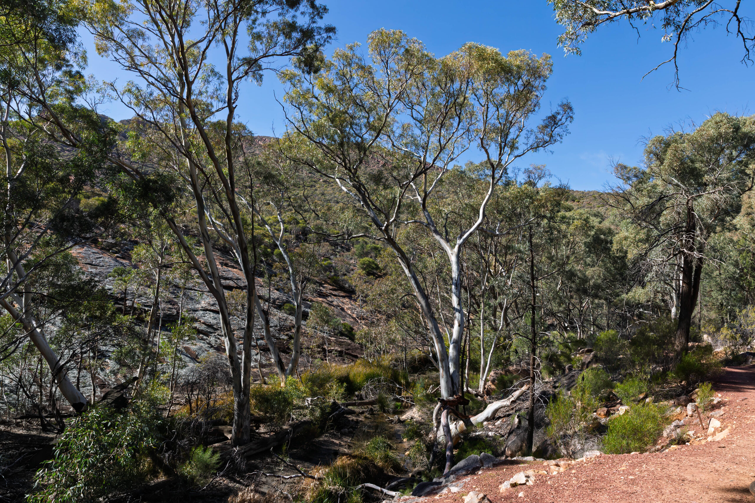 From the upper lookout we descended to the lower lookout. As soon as we stood on the lower platform we appreciated that the view from the upper lookout was definitely worth the extra effort. We made our way back down to the homestead and used the facilities there before commencing the return walk. We decided to walk back via the Top Track. From the higher track we had a fantastic view down onto Sliding Rock and across to Wangara Hill. From the shuttle drop of point we returned along the road to the Visitor Centre encountering three cheeky kookaburras (a riot of kookaburras!) in a tree along the way. It’s always a good day when you see kookaburras.