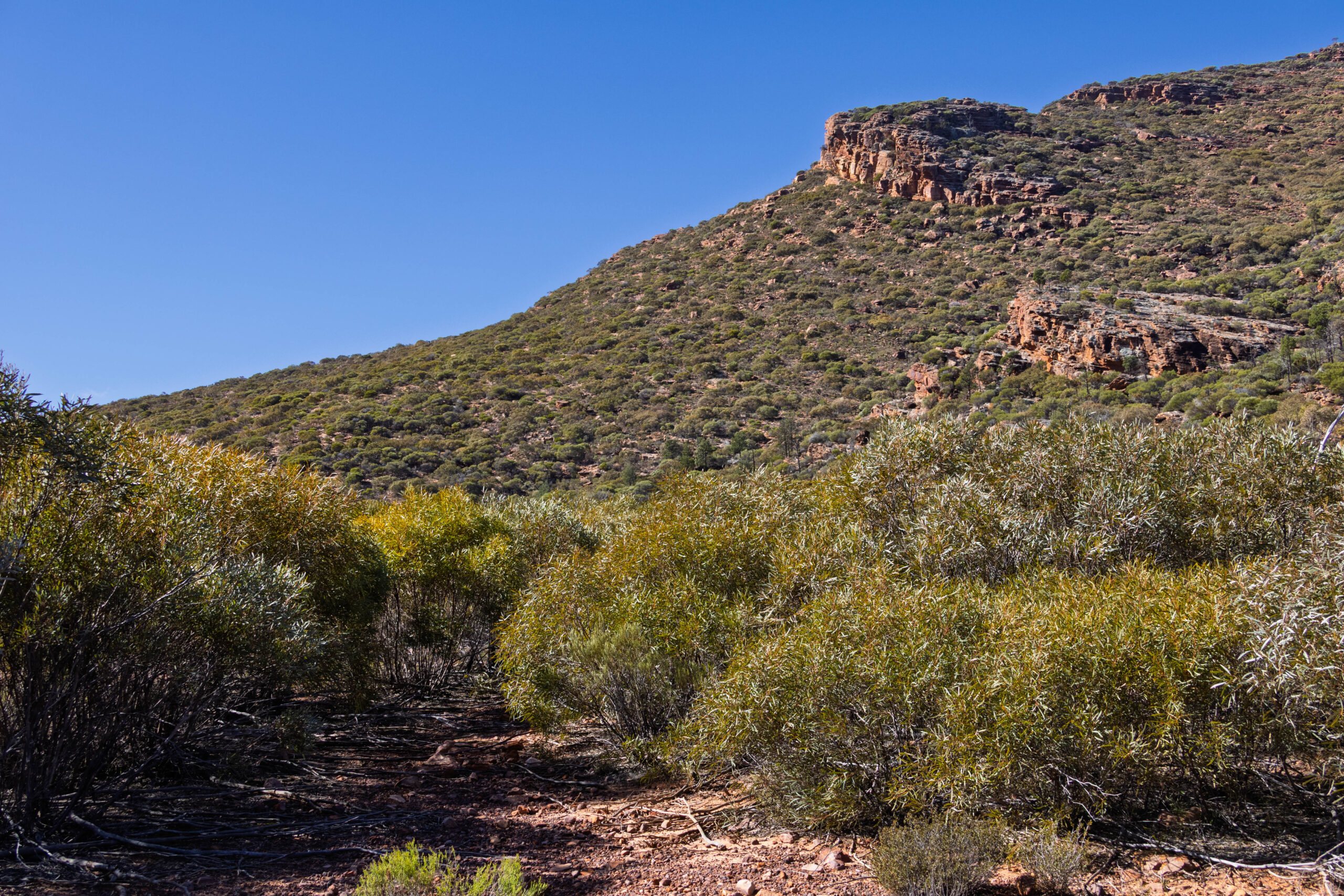We collected the ‘Nature Walks from Wilpena Pound Resort’ map then used the facilities before commencing the Hill’s Homestead/Wangara Lookouts walk(s). Many of the walks share the same route from the Visitor Centre to Hill’s Homestead. It’s a lovely easy track which is actually a road. Probably a fire access track? But also used to run the shuttle bus into Wilpena Pound. We walked all the way, but hikers who want to shave two kilometres off their walk can be dropped off by the shuttle. From the drop-off point you can choose to walk into Hill’s Homestead (EASY 2 hours – 6.6km return), hike up to the Wangara Lookouts (MODERATE 3 hours – 7.8km return) or slog all the way out to St.Mary Peak via the Inside Trail (STRENUOUS 9 hours – 21.5km return). Honestly though? The nine hour hike was never on the agenda!!