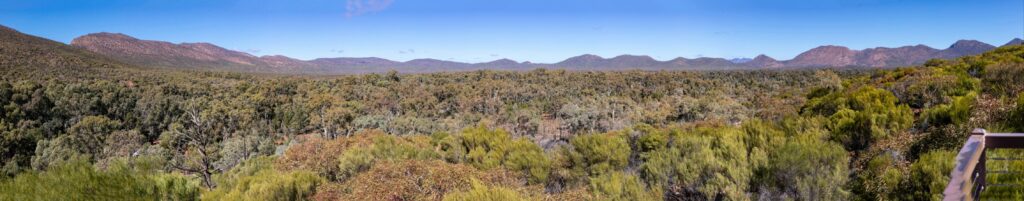 We made it to the upper lookout and the panoramic view over Ikara – Wilpena Pound was outstanding on such a gorgeous day. Wilpena Pound Resort and the Visitor Centre sit on the eastern flank of Wangara Hill so, on the outside of the large natural amphitheater that is known as Wilpena Pound. Wilpena Pound consists of a large flat area surrounded by peaks. It was used for grazing from 1850 until around 1901 when the Hill Family decided to try farming despite the fact that crop growing had never been attempted so far north. After a major flood in 1914 the Hills sold their homestead to the government and it became a forest reserve leased for grazing. In 1945 the area’s tourism potential was recognised and outdoor enthusiasts have flocked here ever since to enjoy the spectacular countryside.